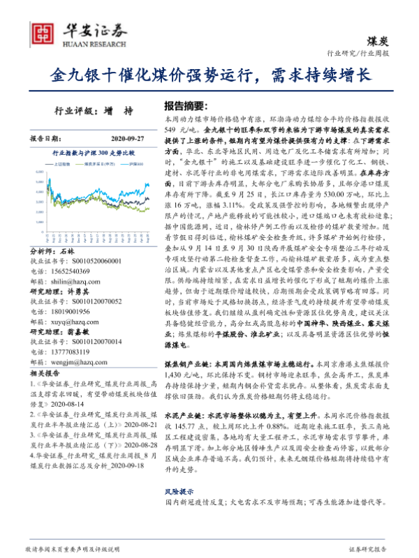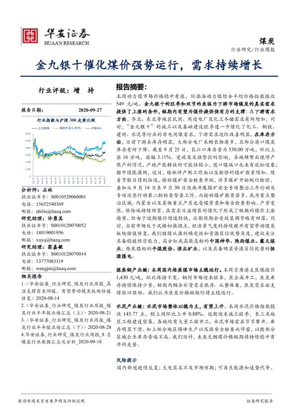 【华安证券】【20200927】20200927-华安证券-煤炭行业周报:金九银十催化煤价强势运行,需求持续增长-22页