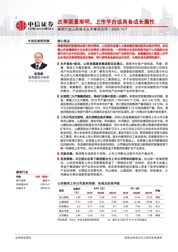 【中信证券】【20201007】煤炭行业山西煤企合并事项点评:改革图景渐明,上市平台或具备成长属性-2页