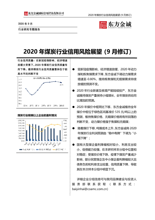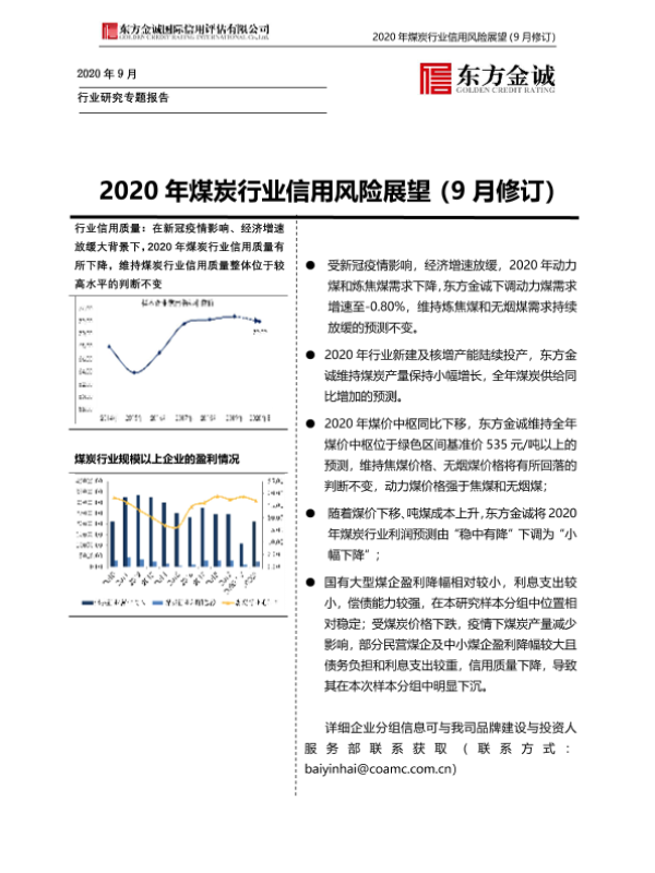 【东方金诚】【202009】2020年煤炭行业信用风险展望(9月修订)-20页