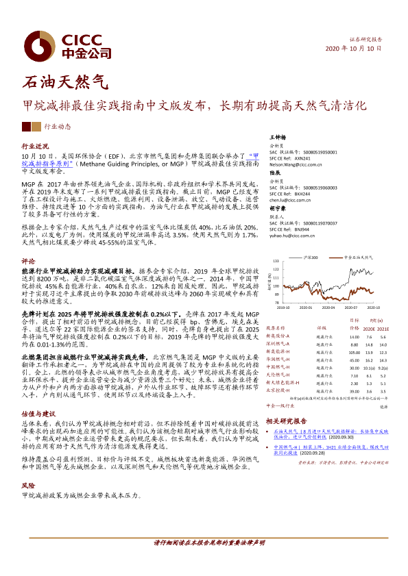 【中金公司】【20201010】石油天然气:甲烷减排最佳实践指南中文版发布,长期有助提高天然气清洁化-5页