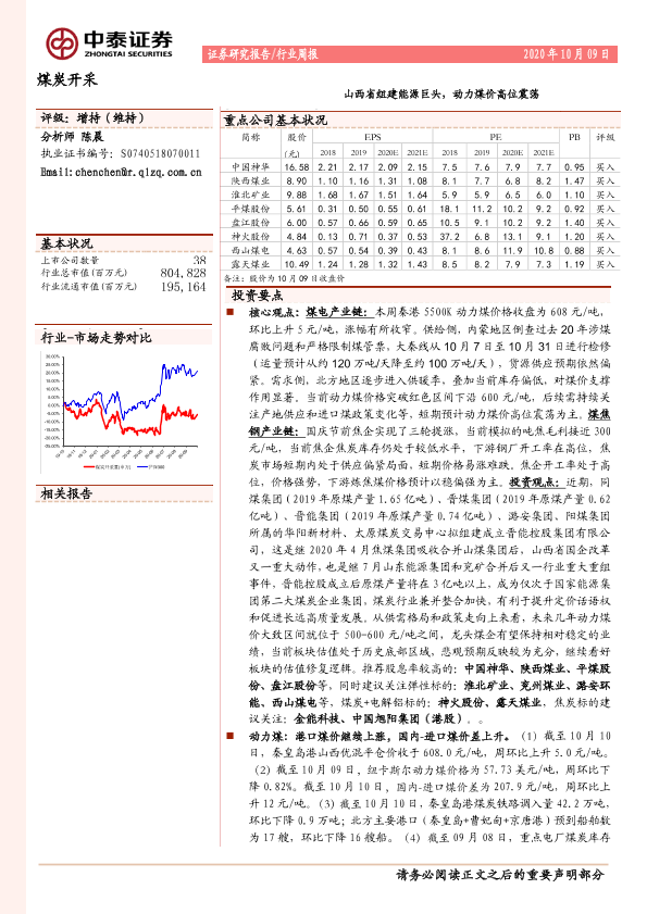 【中泰证券】【20201009】20201009-中泰证券-煤炭开采行业周报:山西省组建能源巨头,动力煤价高位震荡-20页