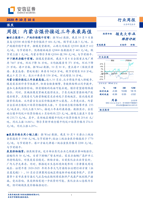 【安信证券】【20201010】20201010-安信证券-煤炭周报:内蒙古煤价接近三年来最高值-20页