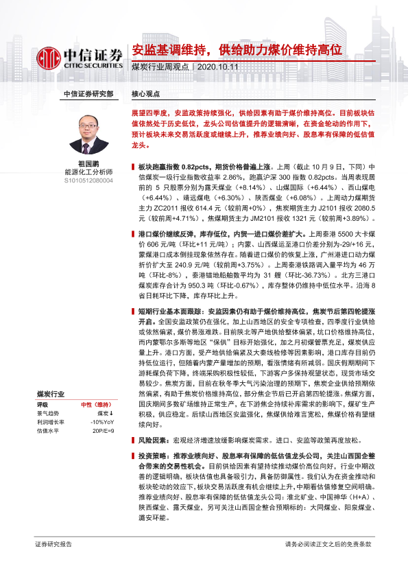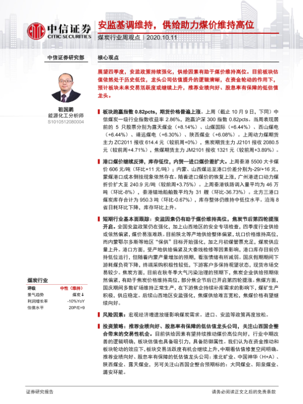 【中信证券】【20201011】20201011-中信证券-煤炭行业周观点:安监基调维持,供给助力煤价维持高位-8页