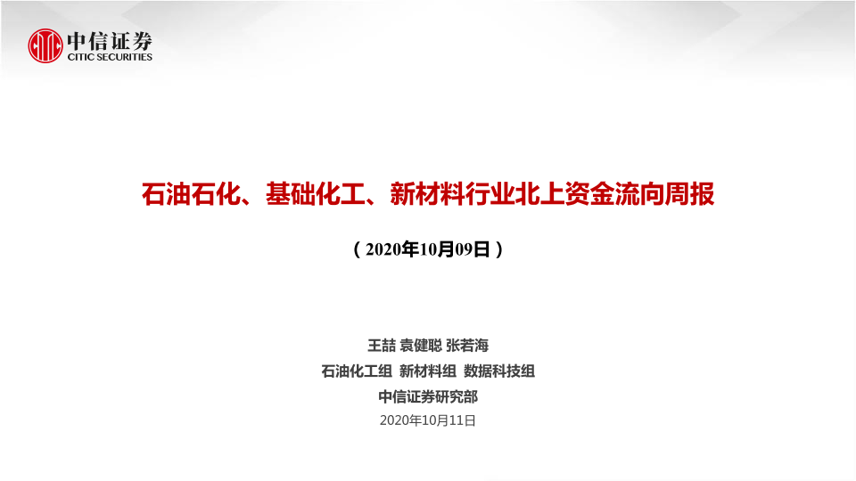 【中信证券】【20201011】石油石化、基础化工、新材料行业北上资金流向周报-31页