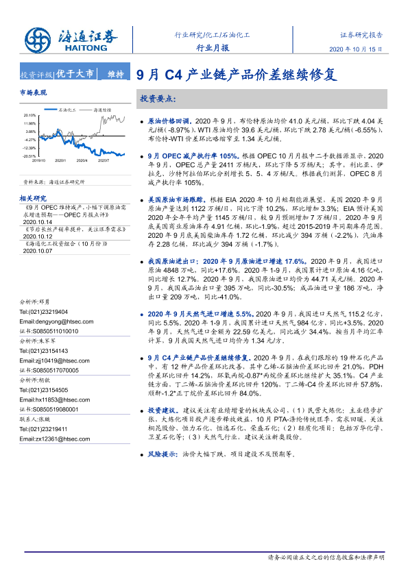 【海通证券】【20201015】20201015-海通证券-石油化工行业月报:9月C4产业链产品价差继续修复-8页