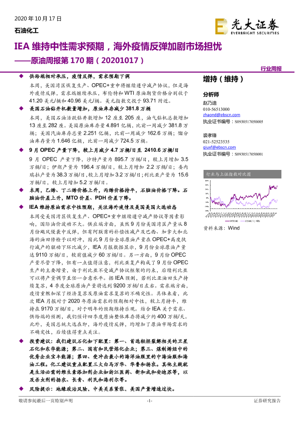 【光大证券】【20201017】原油周报第170期:IEA维持中性需求预期,海外疫情反弹加剧市场担忧-12页
