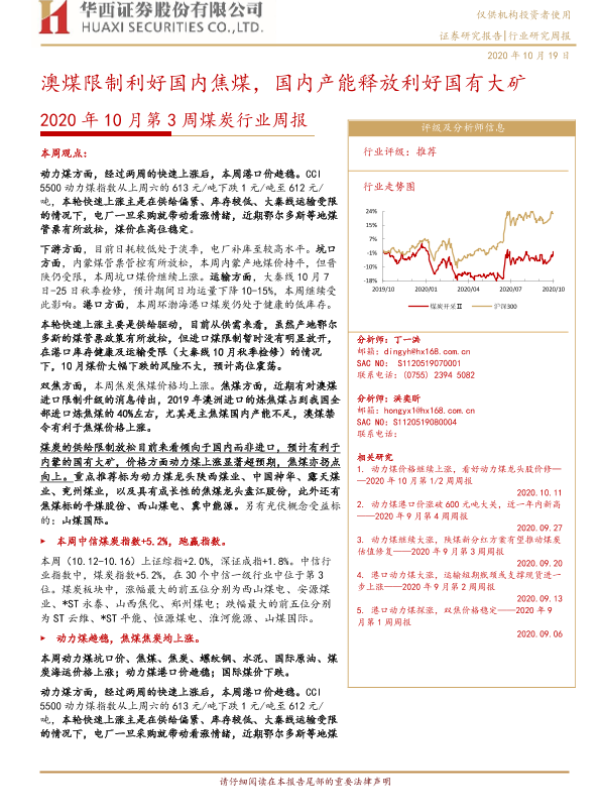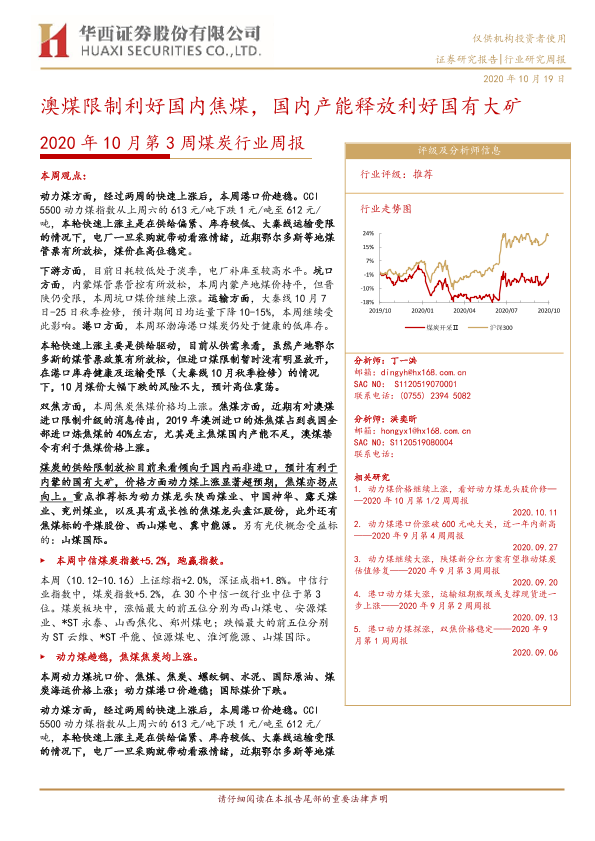 【华西证券】【20201019】2020年10月第3周煤炭行业周报:澳煤限制利好国内焦煤,国内产能释放利好国有大矿-21页
