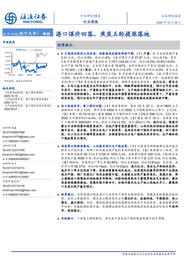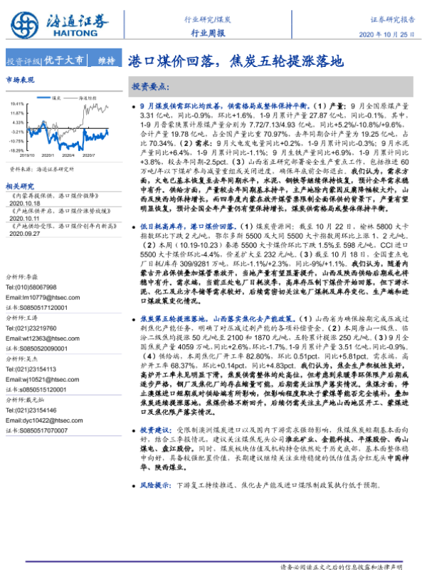 【海通证券】【20201025】20201025-海通证券-煤炭行业周报:港口煤价回落,焦炭五轮提涨落地-2页