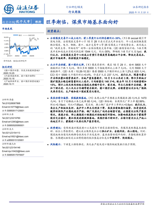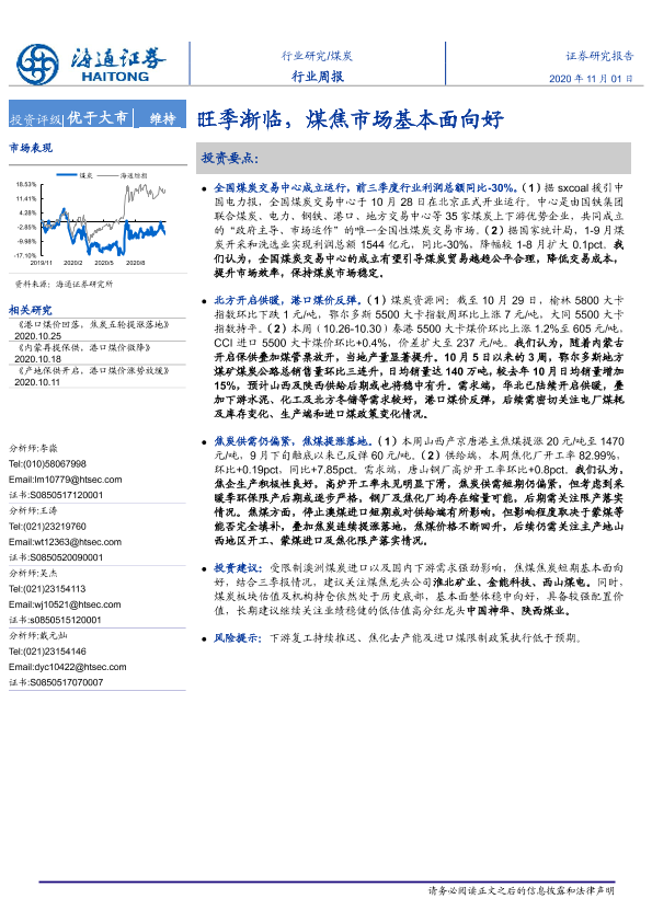 【海通证券】【20201101】煤炭行业周报:旺季渐临,煤焦市场基本面向好-2页