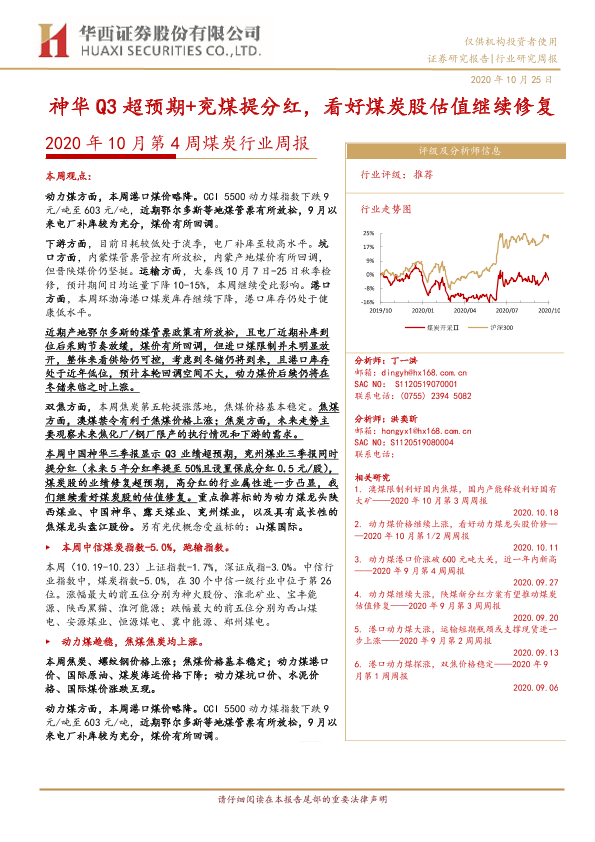 【华西证券】【20201025】2020年10月第4周煤炭行业周报:神华Q3超预期+兖煤提分红,看好煤炭股估值继续修复-24页