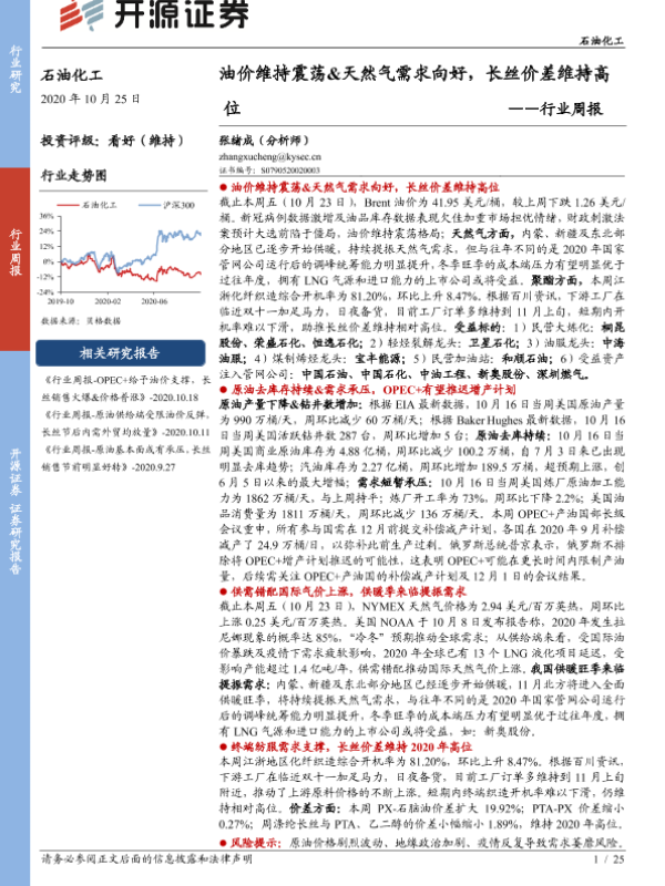 【开源证券】【20201025】石油化工行业周报:油价维持震荡&天然气需求向好,长丝价差维持高位-25页