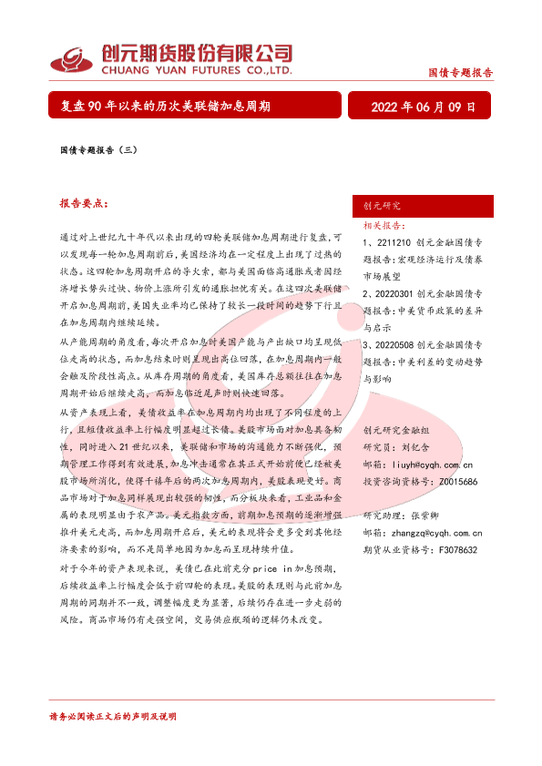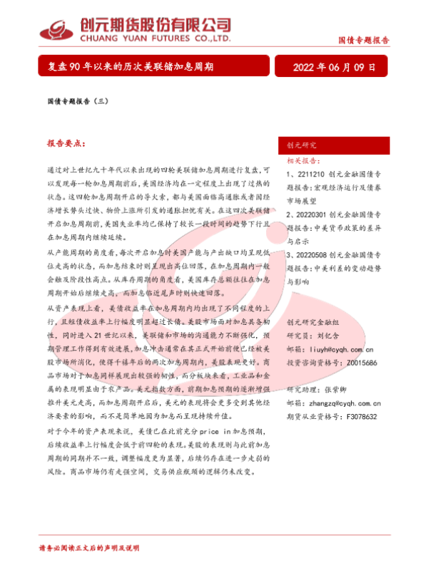 【创元期货】【20220609】国债专题报告(三):复盘90年以来的历次美联储加息周期-25页
