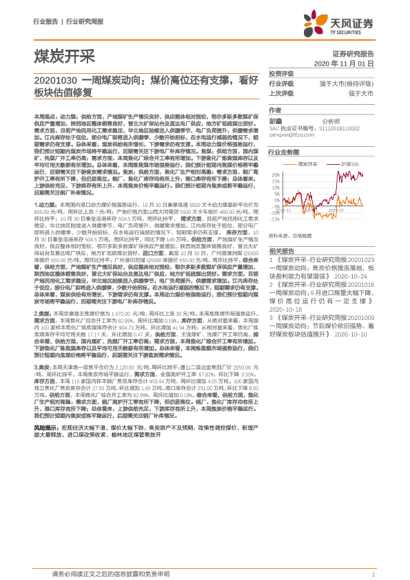 【天风证券】【20201101】20201101-天风证券-煤炭开采一周煤炭动向:煤价高位还有支撑,看好板块估值修复-19页