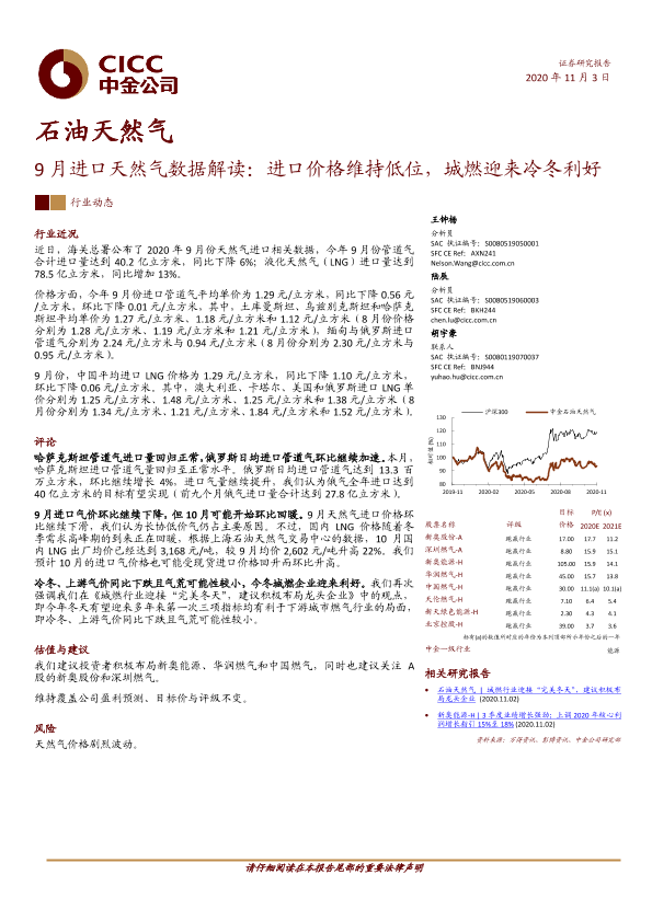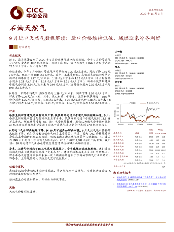 【中金公司】【20201103】20201103-中金公司-9月进口天然气数据解读:进口价格维持低位,城燃迎来冷冬利好-8页