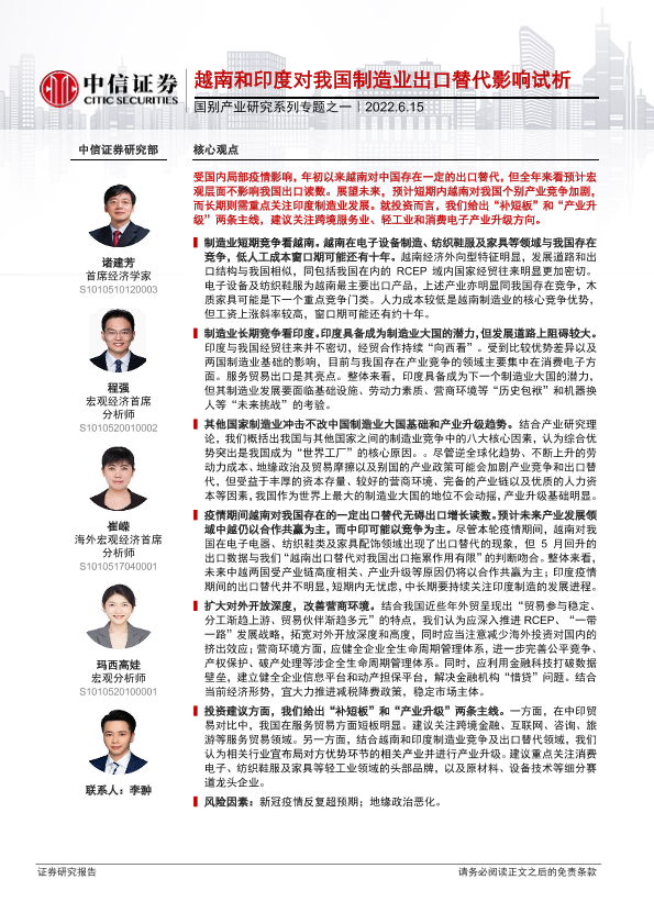 【中信证券】【20220615】国别产业研究系列专题之一:越南和印度对我国制造业出口替代影响试析-26页