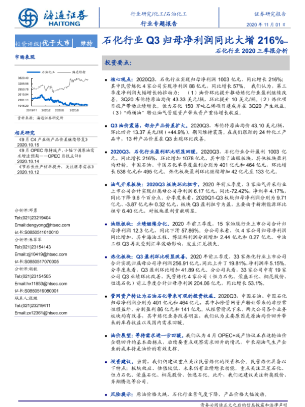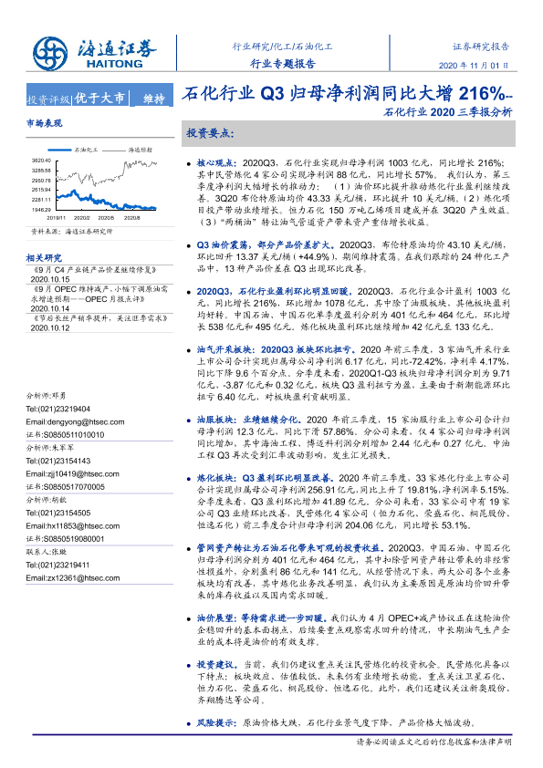 【海通证券】【20201101】石化行业2020三季报分析:石化行业Q3归母净利润同比大增216%-21页