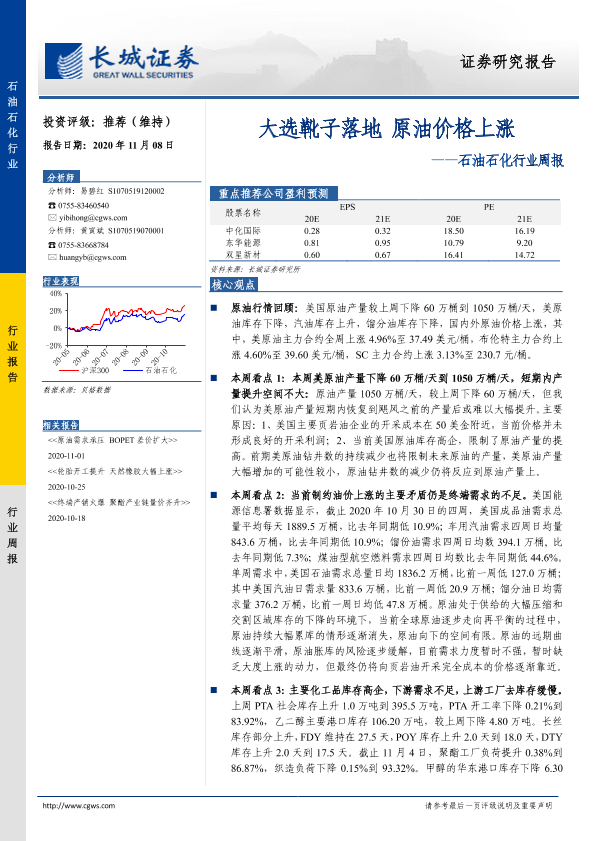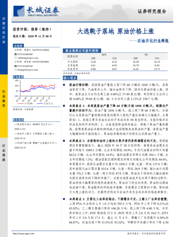 【长城证券】【20201108】20201108-长城证券-石油石化行业周报:大选靴子落地 原油价格上涨-10页