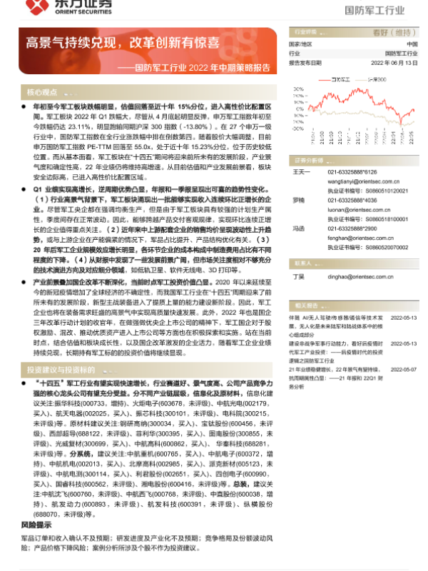 【东方证券】【20220613】国防军工行业2022年中期策略报告:高景气持续兑现,改革创新有惊喜-29页