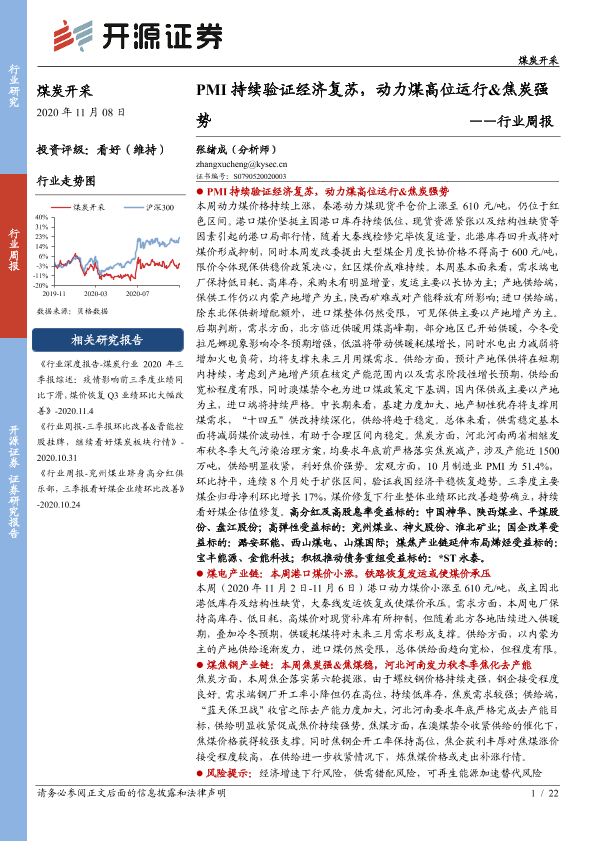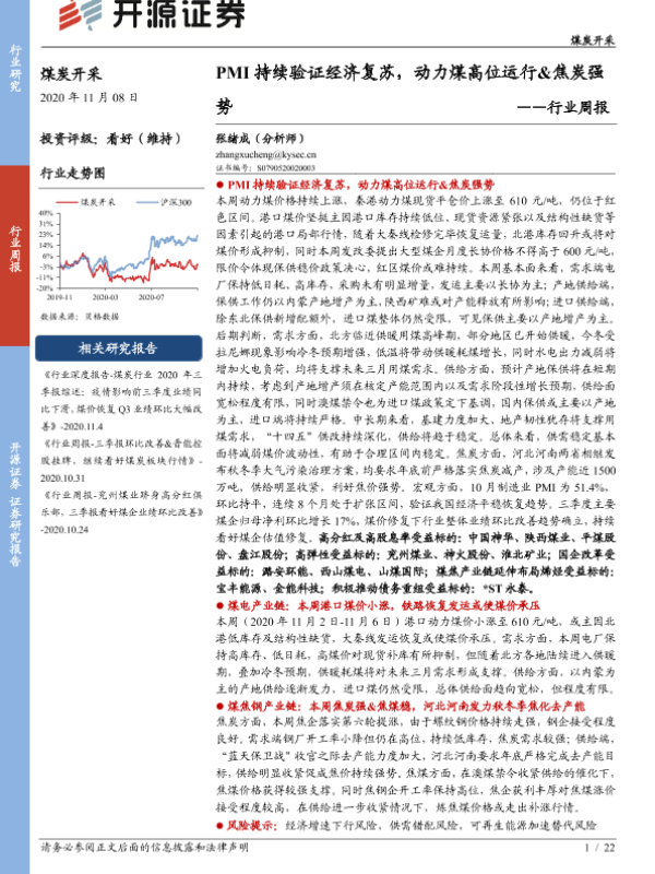 【开源证券】【20201108】煤炭开采行业周报:PMI持续验证经济复苏,动力煤高位运行&焦炭强势-22页