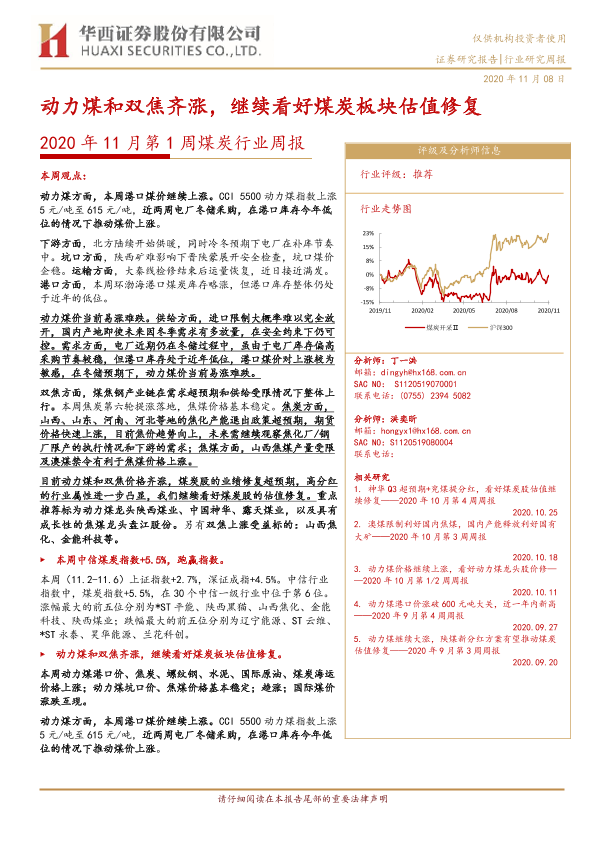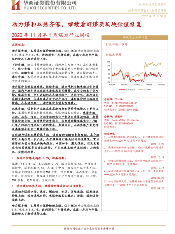 【华西证券】【20201108】2020年11月第1周煤炭行业周报:动力煤和双焦齐涨,继续看好煤炭板块估值修复-21页