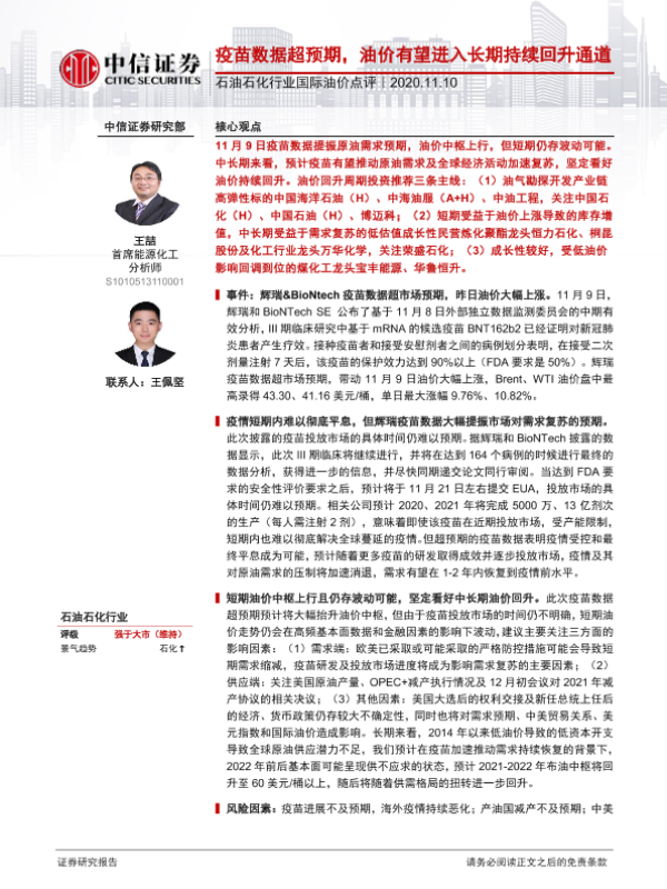 【中信证券】【20201110】石油石化行业国际油价点评:疫苗数据超预期,油价有望进入长期持续回升通道-4页