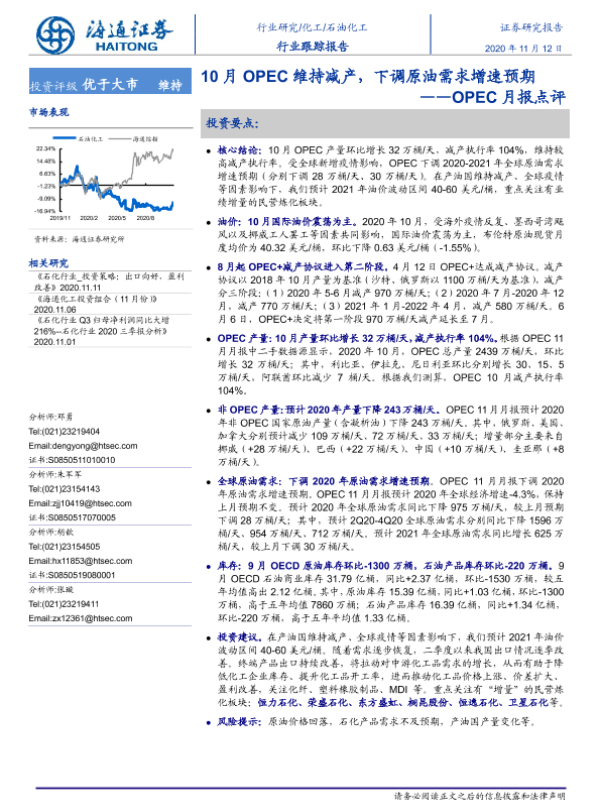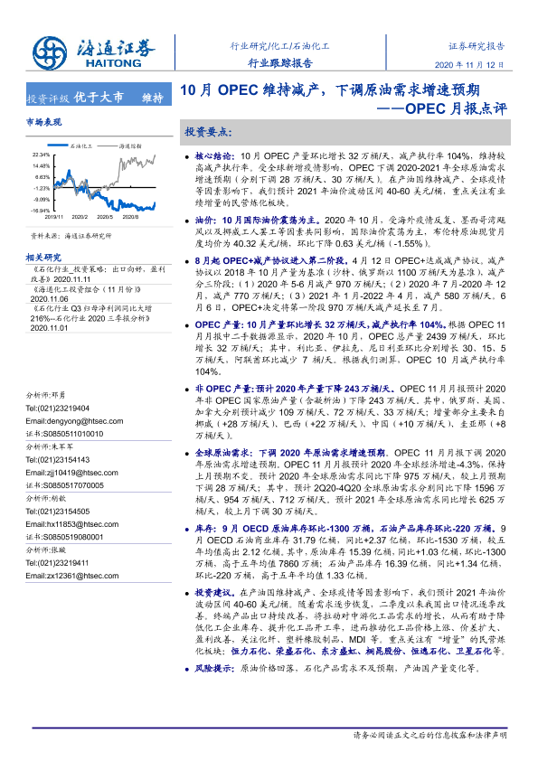 【海通证券】【20201112】20201112-海通证券-石油化工行业OPEC月报点评:10月OPEC维持减产,下调原油需求增速预期-5页
