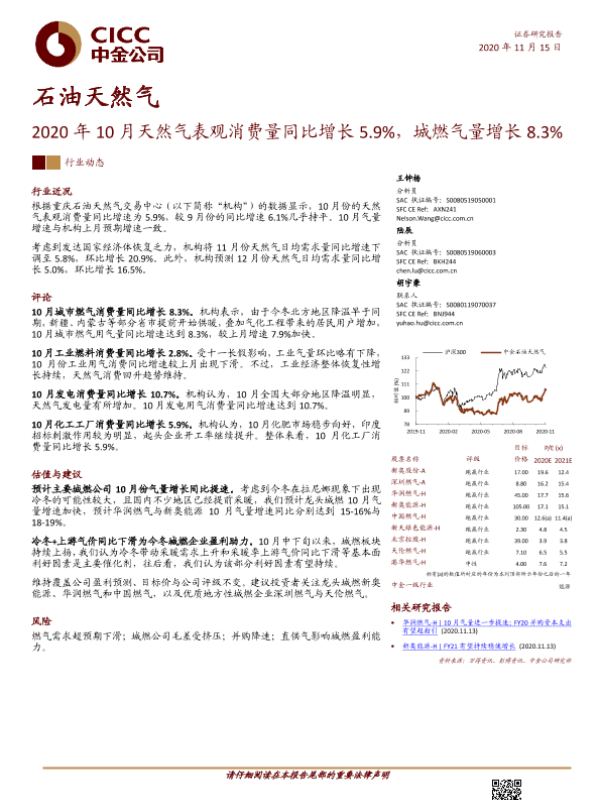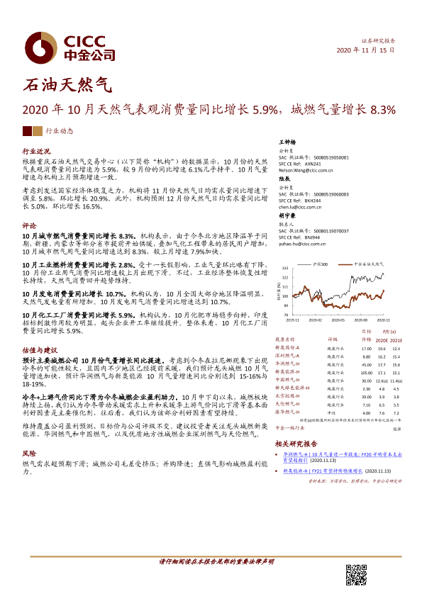 【中金公司】【20201115】2020年10月天然气表观消费量同比增长5.9%,城燃气量增长8.3%-5页