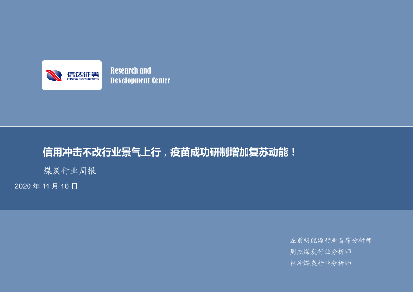 【信达证券】【20201116】20201116-信达证券-煤炭行业周报:信用冲击不改行业景气上行,疫苗成功研制增加复苏动能!-25页