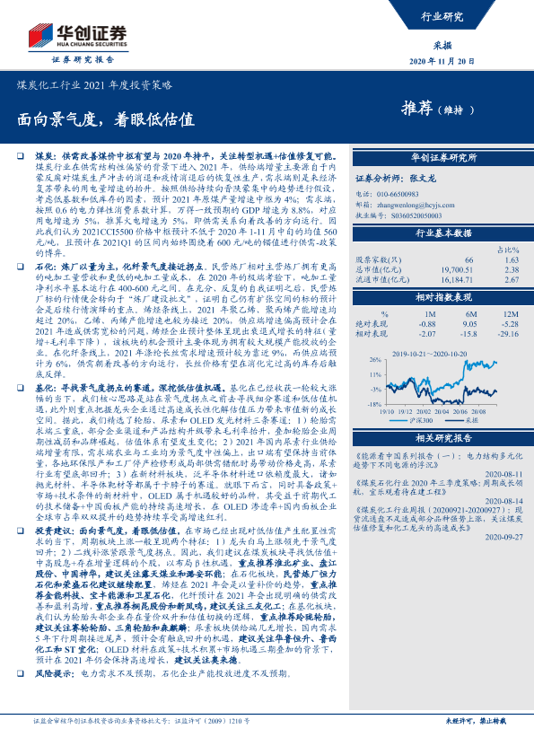 【华创证券】【20201120】煤炭化工行业2021年度投资策略:面向景气度,着眼低估值-37页