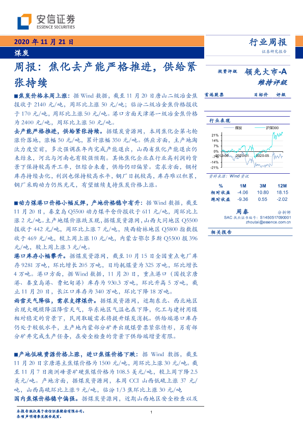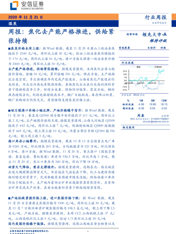 【安信证券】【20201121】20201121-安信证券-煤炭周报:焦化去产能严格推进,供给紧张持续-23页