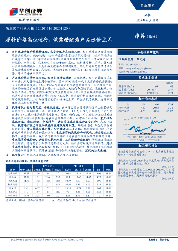 【华创证券】【20201123】煤炭化工行业周报:原料价格高位运行,供需错配为产品涨价主因-22页
