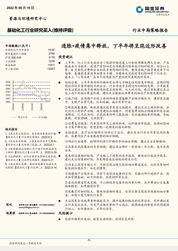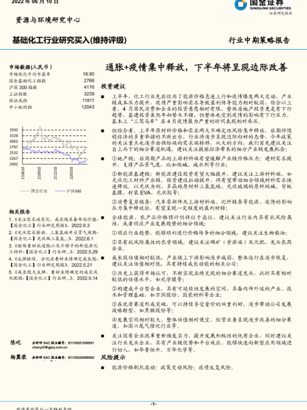 【国金证券】【20220610】基础化工行业中期策略报告:通胀+疫情集中释放,下半年将呈现边际改善-24页