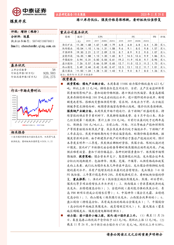 【中泰证券】【20201129】20201129-中泰证券-煤炭开采行业周报:港口库存低位,煤炭价格易涨难跌,看好板块估值修复-16页