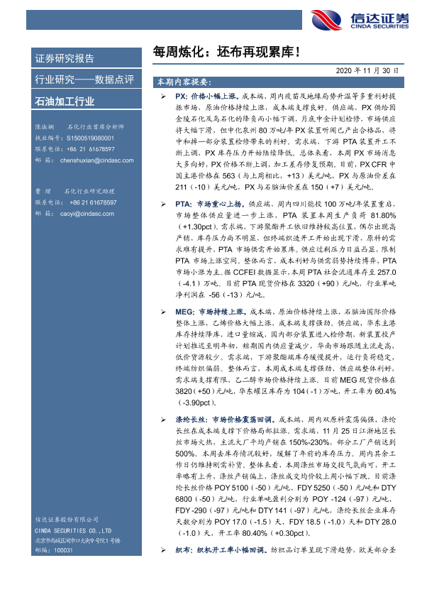 【信达证券】【20201130】20201130-信达证券-石油加工行业每周炼化:坯布再现累库!-8页