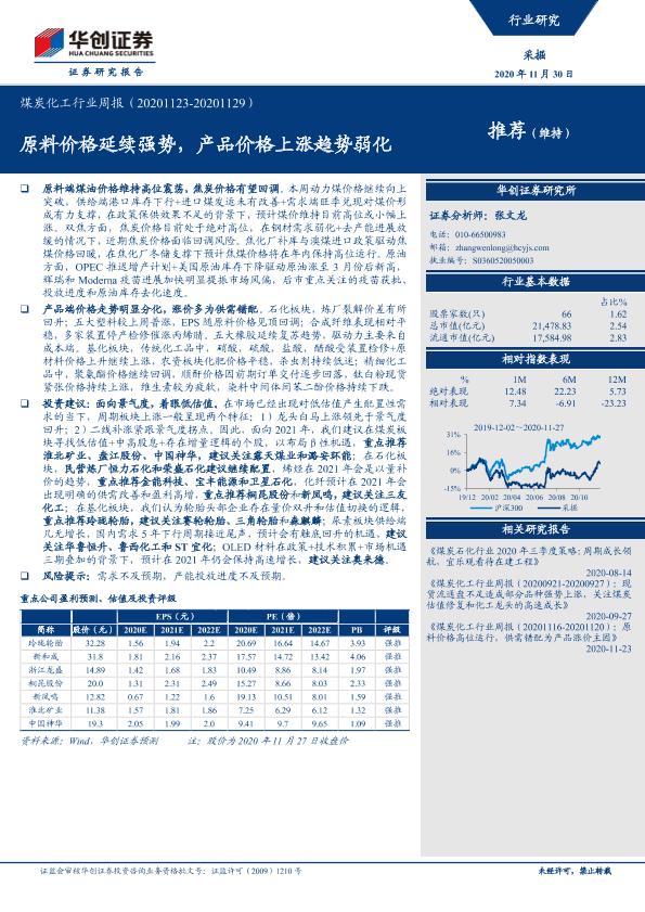 【华创证券】【20201130】煤炭化工行业周报:原料价格延续强势,产品价格上涨趋势弱化-21页