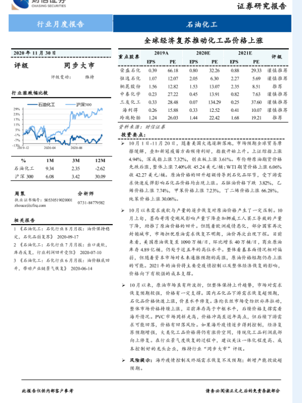 【财信证券】【20201130】石油化工行业月度报告:全球经济复苏推动化工品价格上涨-10页
