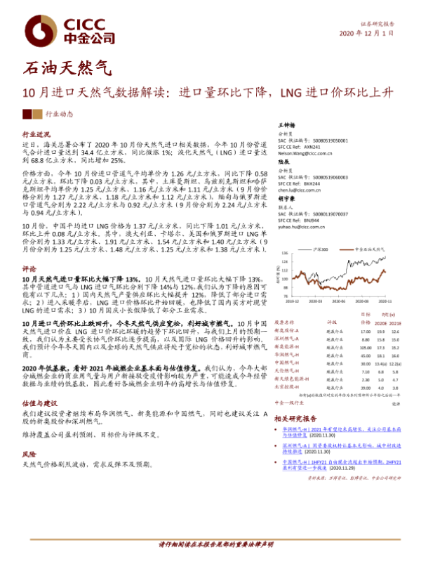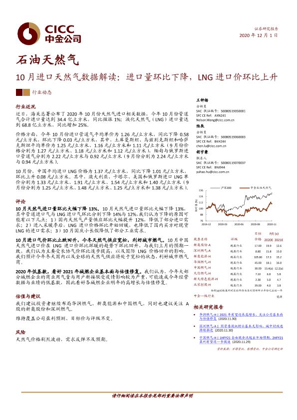 【中金公司】【20201201】10月进口天然气数据解读:进口量环比下降,LNG进口价环比上升-8页