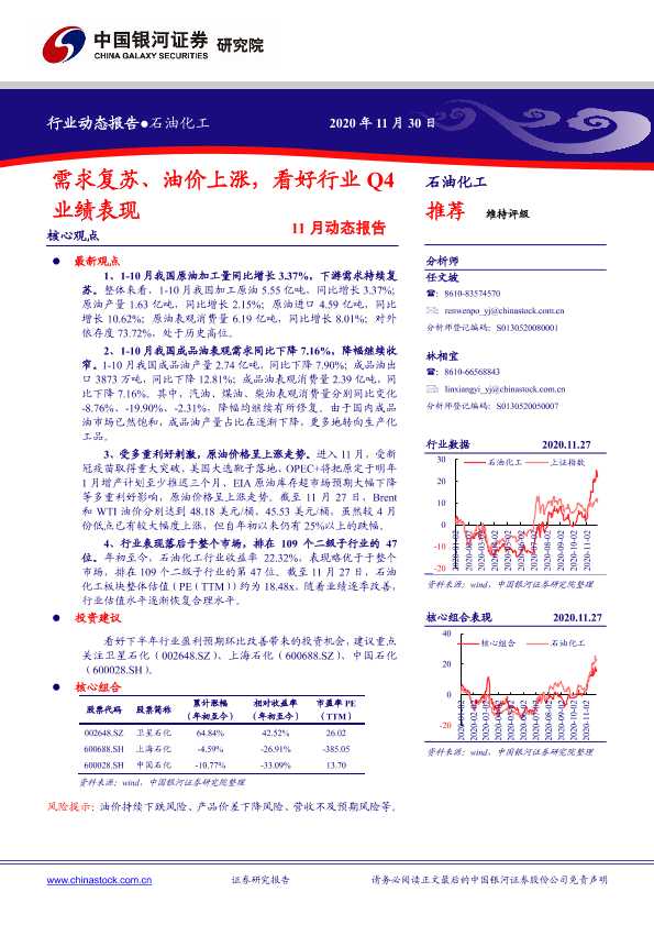 【银河证券】【20201130】石油化工:需求复苏、油价上涨,看好行业Q4业绩表现-23页