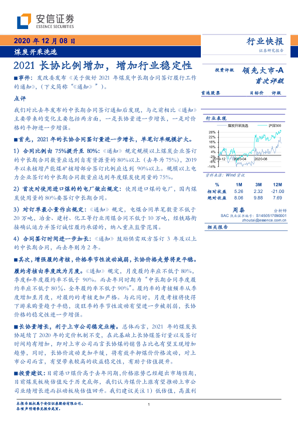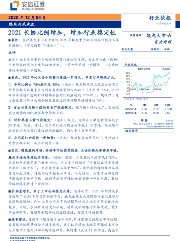 【安信证券】【20201208】20201208-安信证券-煤炭开采洗选行业快报:2021长协比例增加,增加行业稳定性-4页