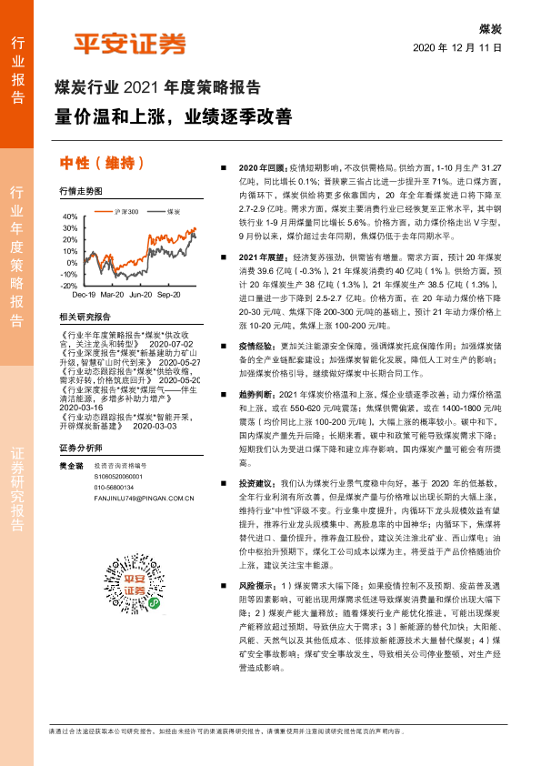 【平安证券】【20201211】煤炭行业2021年度策略报告:量价温和上涨,业绩逐季改善-25页