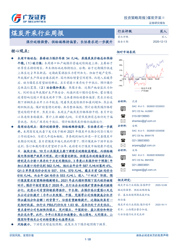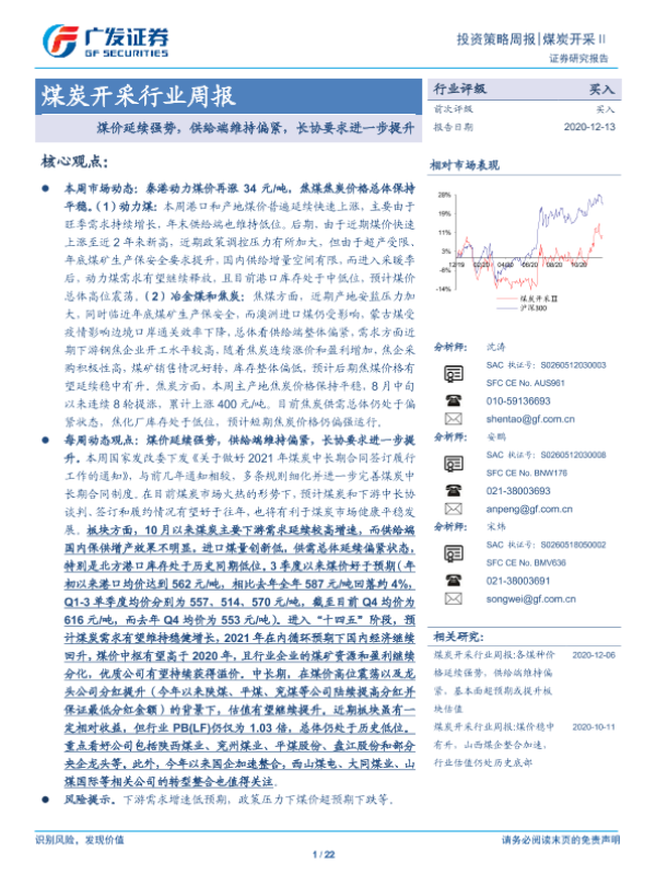 【广发证券】【20201213】20201213-广发证券-煤炭开采行业周报:煤价延续强势,供给端维持偏紧,长协要求进一步提升-22页