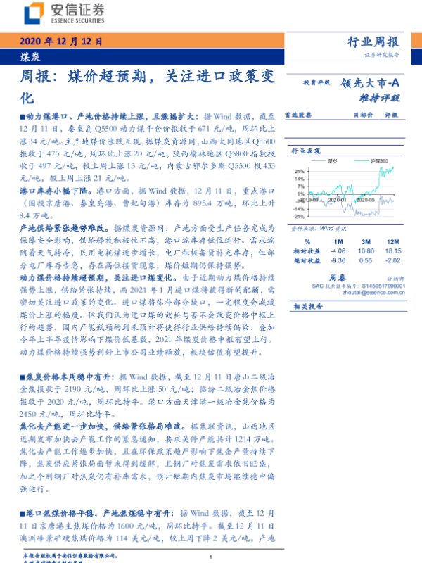 【安信证券】【20201212】20201212-安信证券-煤炭周报:煤价超预期,关注进口政策变化-24页