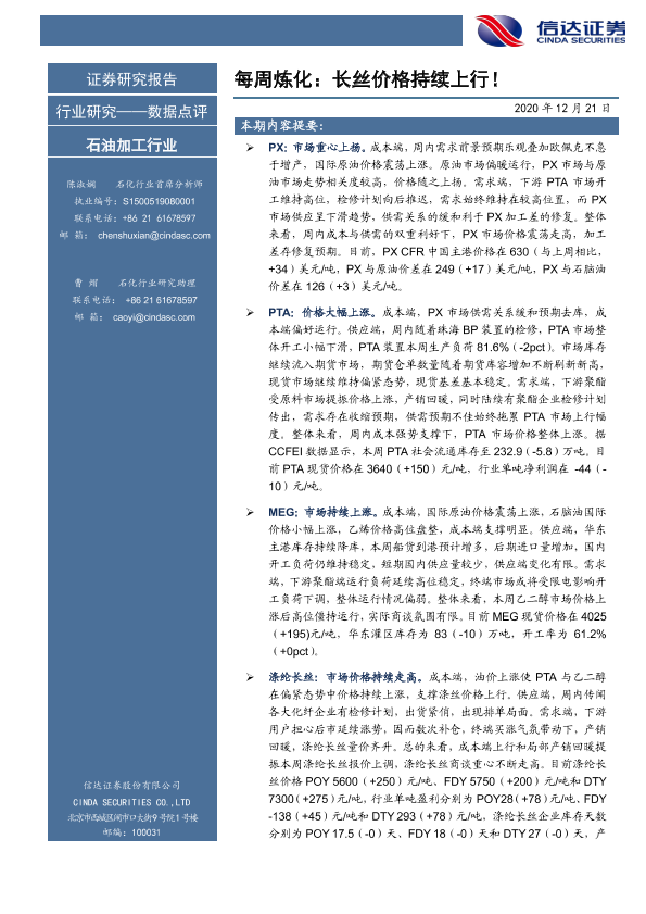 【信达证券】【20201221】每周炼化:长丝价格持续上行!-8页