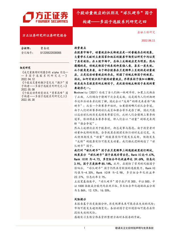 【方正证券】【20220611】多因子选股系列研究之四:个股动量效应的识别及“球队硬币”因子构建-26页