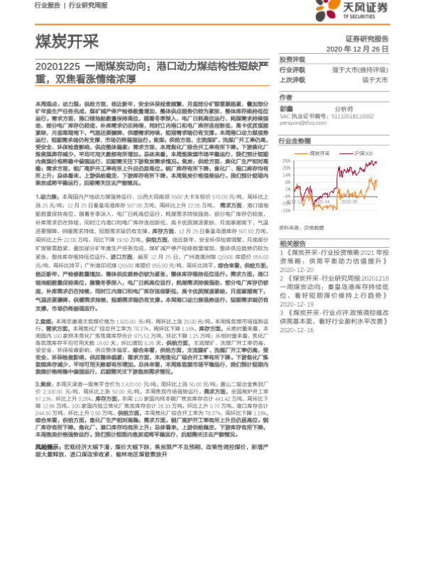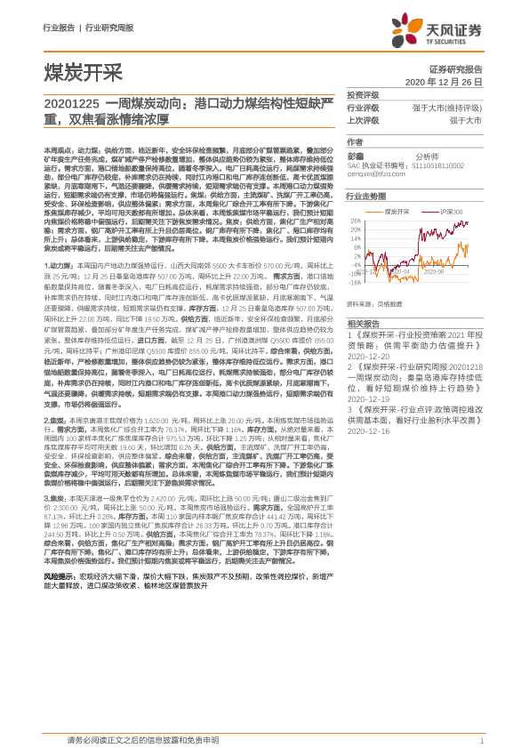 【天风证券】【20201226】20201226-天风证券-一周煤炭动向:港口动力煤结构性短缺严重,双焦看涨情绪浓厚-19页