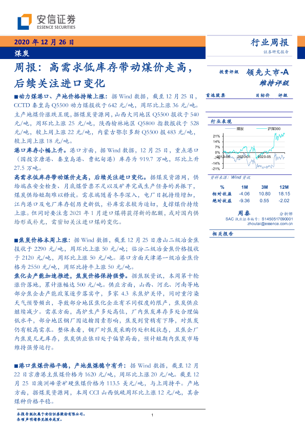 【安信证券】【20201226】20201226-安信证券-煤炭周报:高需求低库存带动煤价走高,后续关注进口变化-21页