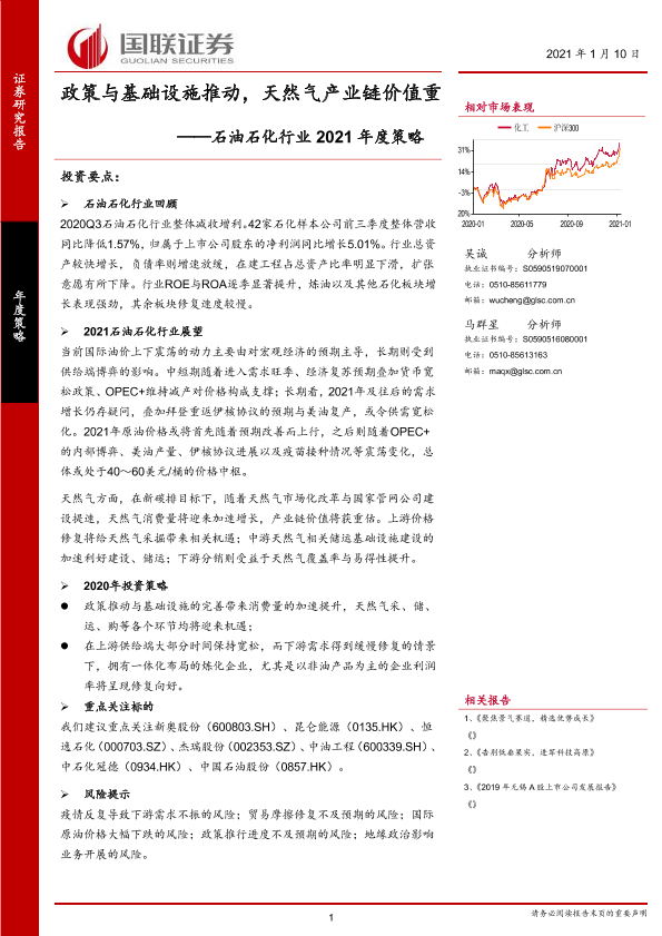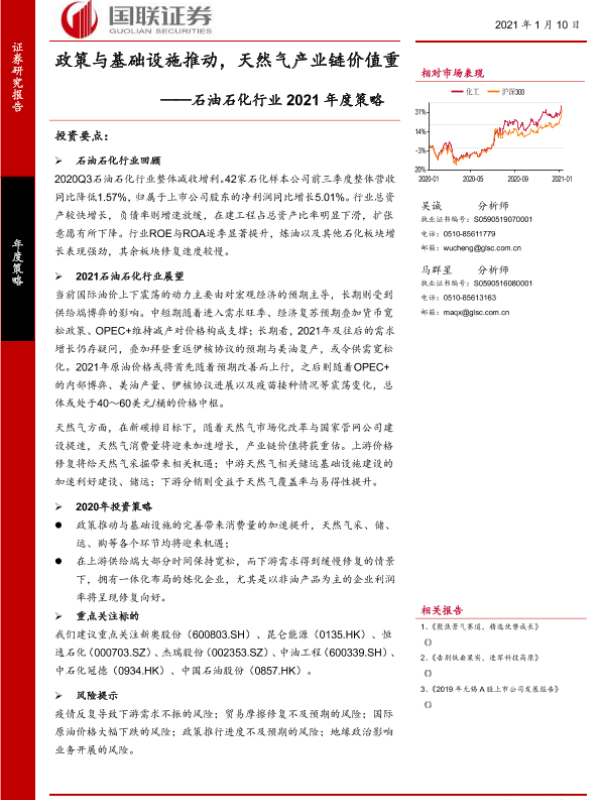 【国联证券】【20210110】石油石化行业2021年度策略:政策与基础设施推动,天然气产业链价值重估-28页
