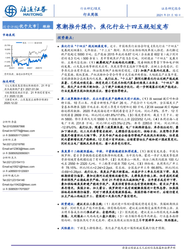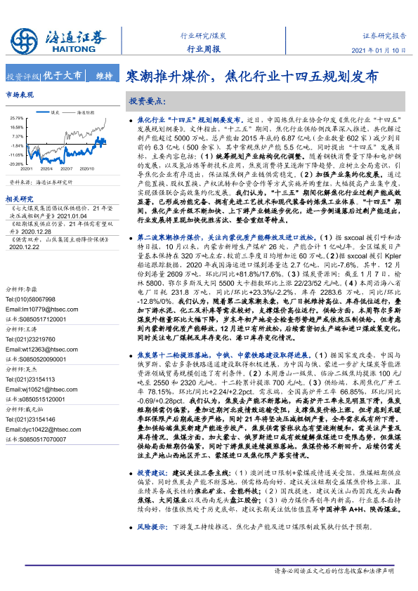 【海通证券】【20210110】20210110-海通证券-煤炭行业周报:寒潮推升煤价,焦化行业十四五规划发布-2页