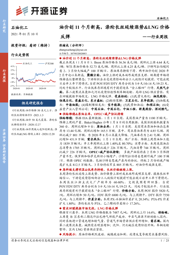【开源证券】【20210110】油价创11个月新高,涤纶长丝延续涨势&LNG价格反弹-25页