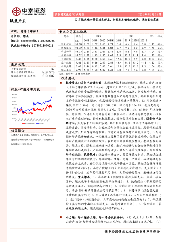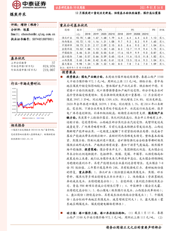【中泰证券】【20210116】20210116-中泰证券-煤炭开采行业周报:12月煤炭进口量创历史新高,供需基本面依然偏紧,煤价高位震荡-16页
